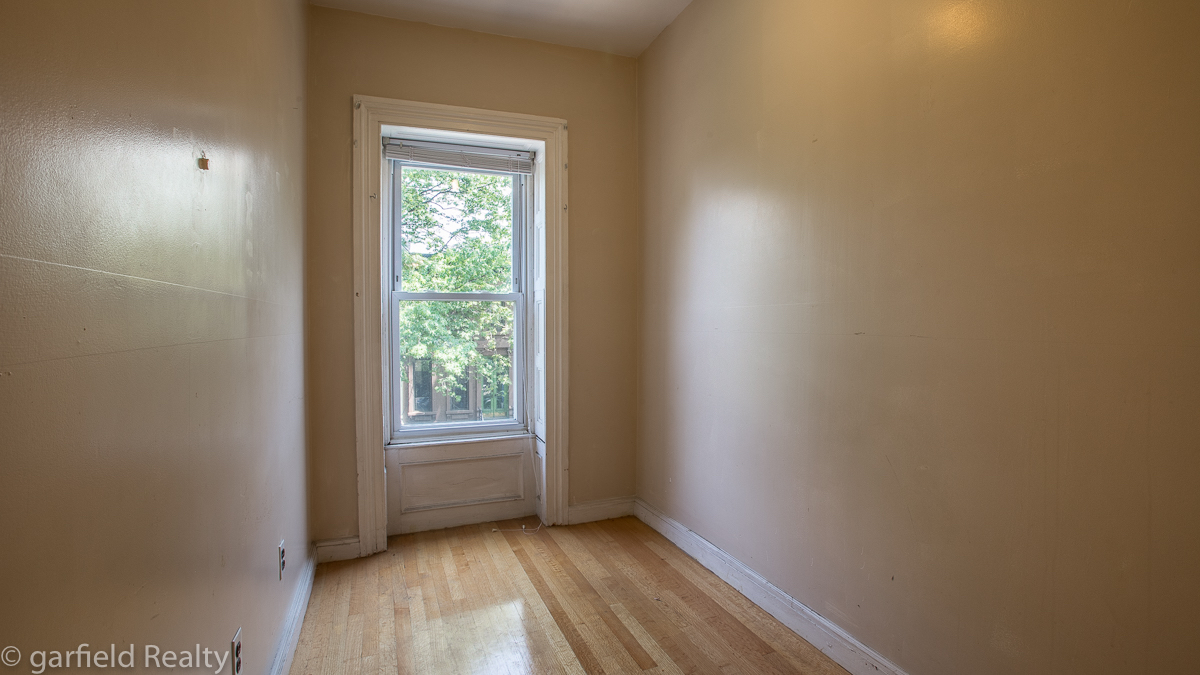 This brick townhouse was converted from a single family and has been proudly owned by the same family for 61 years. Built in 1899, this house is 20ft x 40ft on a 100ft lot. There are many original details intact, including high ceilings, oak flooring, moldings, oversized windows, decorative fireplaces, and a skylight. A high-ceilinged basement is currently used for storage. The south-facing garden can be transformed into an oasis for outdoor dining, entertaining, relaxing, and gardening.